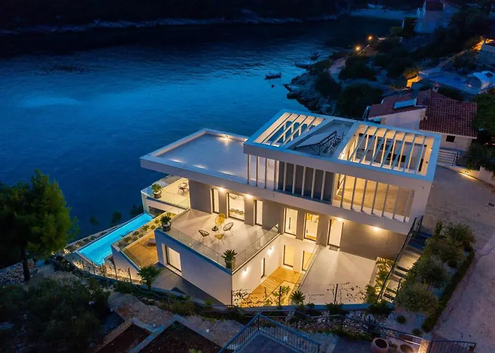 Beachfront Villa Extravaganza With Infinity Pool está localizada a caminhada de 25 minutos de Old Trogir beach e tem solário, pátio e utensílios para churrasco para garantir uma estadia memorável. Com acesso a terraço, esta acomodação está localizada a 3.9 km de Otok Drvenik Mali.